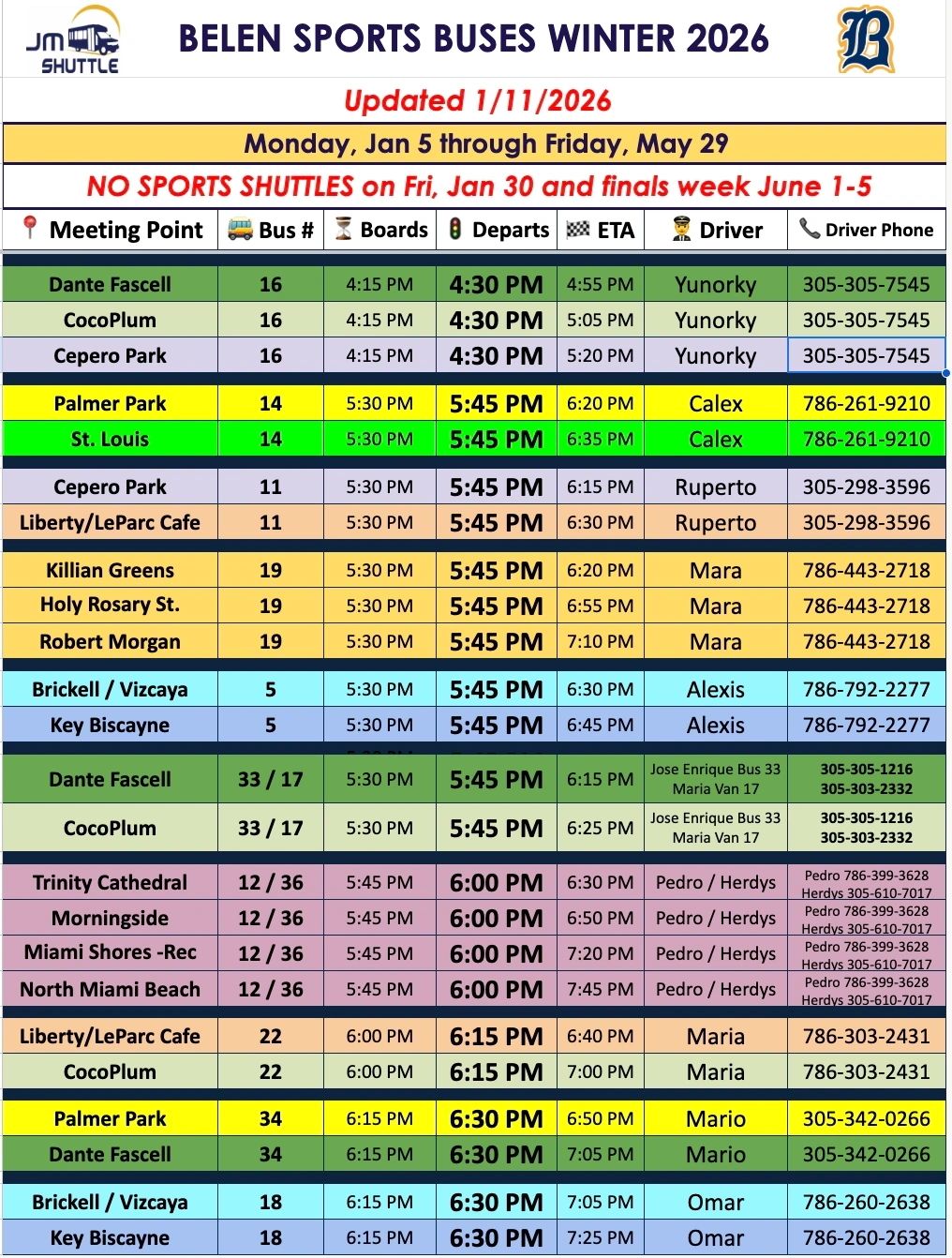 ON EARLY DISMISSAL DAYS - ALL SPORTS SHUTTLES WILL OPERATE BASED ON THIS SCHEDULE NOT ANY EARLIER!